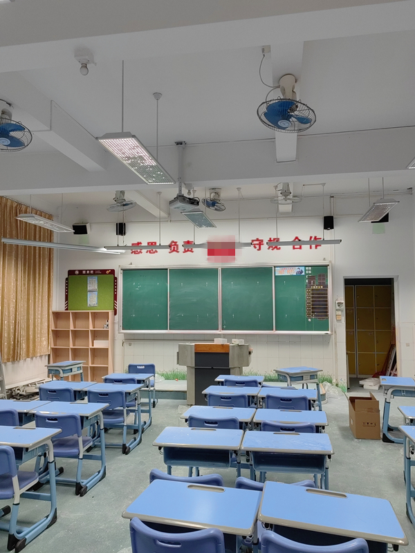 教室采用傳統的熒光燈管,教室里部分區域的光線偏暗,燈光照度不均勻,沒有設置黑板專用燈具。學生長期在照度不足的光環境下學習,極易導致視覺疲勞,不利于學生視力健康,嚴重影響師生教學效率。