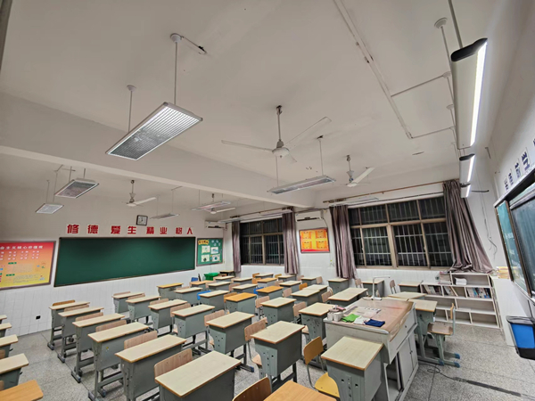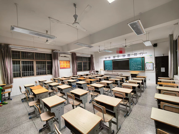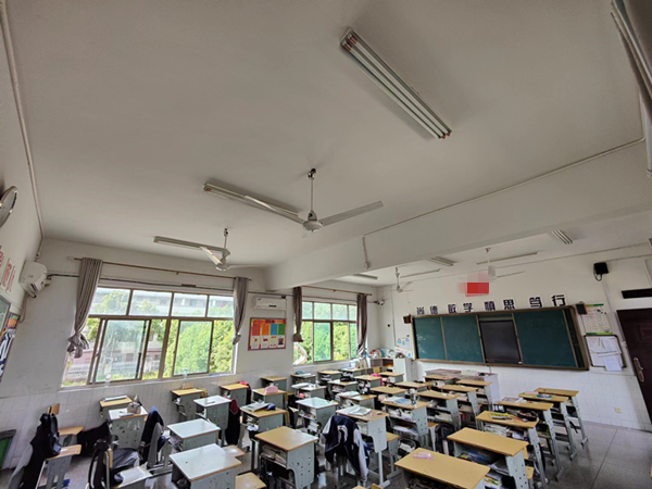 教室采用傳統的熒光燈管,教室里部分區域的光線偏暗,燈光照度不均勻,沒有設置黑板專用燈具。學生長期在照度不足的光環境下學習,極易導致視覺疲勞,不利于學生視力健康,嚴重影響學生的學習效率。