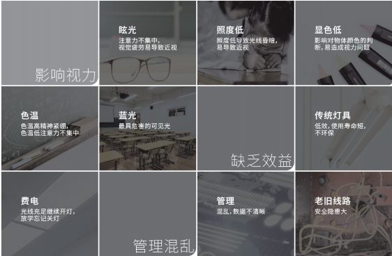 有調查顯示,我國學生每天約有60%的時間在教室。在國家自然科學基金項目《基于光生物效應的教室健康照明研究》實驗中更科學地表明:學校教室照明將直接影響學生學習效率及視力健康。