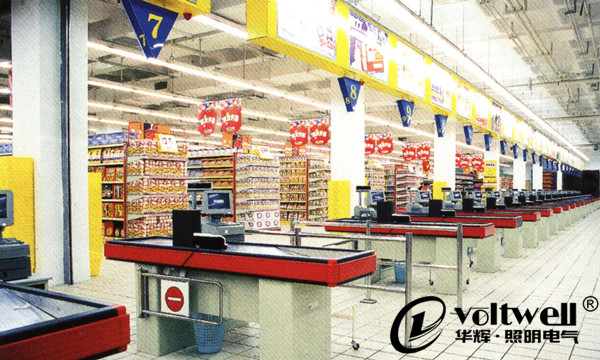 在超市里,光的作用是吸引客戶,顧客的注意力更加容易被光效氣氛好的區域所吸引。精心設計的照明可以為顧客創造一種舒適愉悅的氣氛,從而使顧客產生極為舒適的心情。貨物區有效的照明主要是使客戶感到舒適從而愿意繼續光臨。獨到新穎的燈具設計更加突出了內部的設計,同時也加深了整體照明印象。