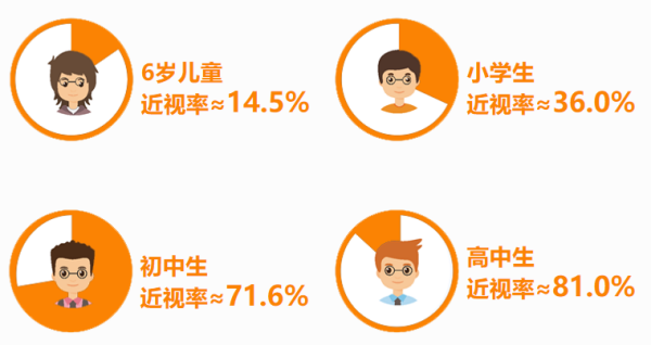目前,我國青少年的近視發病率呈不斷上升趨勢。據世界衛生組織最新研究報告顯示:目前中國高中生和大學生的近視率均已超過七成,并逐年增加,青少年近視率高居世界第一,小學生的近視率也超過 45%。