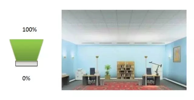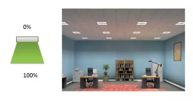 直接照明:大部分光線(100-90%)是從上方直接往下照射,均勻覆蓋在我們的工作臺面、會議桌和地面等水平區域,是一種經濟實惠的照明方式,也是目前絕大部分辦公室照明使用的方式。