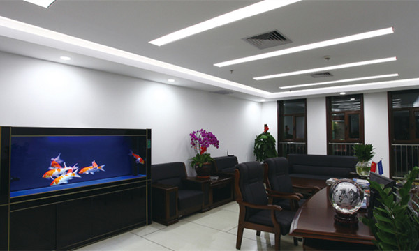 在小型辦公室,除了使用LED正方形燈盤均勻排布的方案,還借用LED燈帶打造出細(xì)膩流暢的光帶天花效果,整體空間效果簡潔明亮。