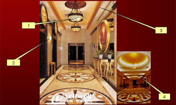 2、裝飾性壁燈為過道提供局部照明,以補充照度的不足,安裝高度以看不見內部光源為準,同時此吊燈的裝飾性也必需融入酒店裝飾風格。