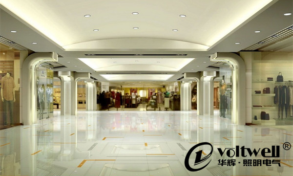 百貨商場屬于室內公共活動空間,人流量大,良好的通道照明能給顧客提供正確的流動指引,保證顧客和商場的財務安全,可采用高效率節(jié)能筒燈排列安裝于天花板,達到充足均勻的光線。