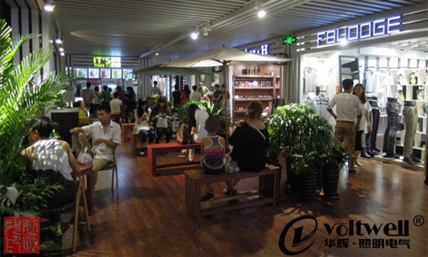 中庭建設一般都有自然采光的設計,但是夜間營業(yè)必須依靠人工照明。空間高大的中庭頂部宜采用筒燈照明,為改善頂部照明的不足,墻壁也可以設置壁燈照明,同時也可以豐富空間的層次。