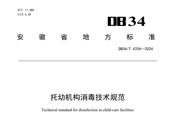 近日,安徽省市場監(jiān)管局發(fā)布了安徽省地方標(biāo)準(zhǔn)DB34/T 4704-2024《托幼機(jī)構(gòu)消毒技術(shù)規(guī)范》。