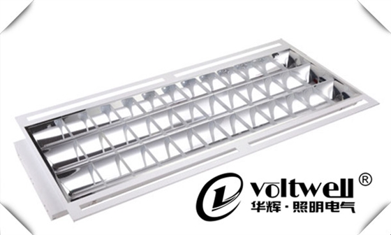 華輝的燈盤:底盤采用優質冷軋鋼板,強度高,韌性強,表面不出現凹凸不平的現象,經酸洗、磷化處理后,采用粉末噴涂技術,粘附力強,流平好,不易刮花,長時間高溫下不易變色。反光網采用進口的電化鋁,用光學原理設計反射弧度,能最大的利用有效光,光效更高,光線柔和、無眩光。所有的塑料件采用阻燃材料(包括光管座、接線端子),使用更放心。