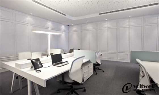 主要考慮辦公室人員主要的視覺物體是文件和人物,只要達到能夠清晰識別文字且不會引起視覺疲勞的照明標準,比如亮度為1CD/平方,減少不必要的照明燈光資源,達到合理的燈光明暗度。