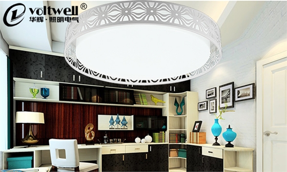 書房的光線應該以冷色調為主,這樣的色調容易使我們平靜。燈光最好無色彩,千萬不要用艷麗的紅光或者黃光,這樣的光線不但刺眼,還會刺激神經,讓我們興奮。其中,華輝照明時尚簡約的LED吸頂燈就是不錯的選擇。