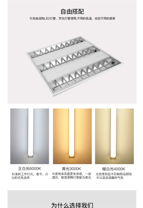 1、取下燈盤上之格柵反光罩,注意取格柵反光罩時輕拿輕放,不要刮傷,將燈具本體放置已預留好的天花龍骨上。放置時請注意四邊的位置,讓其燈具四邊完全擱置龍骨條上,以免燈具掉落,注意當燈具較重時,請用線絲將燈具吊裝在天花板上。