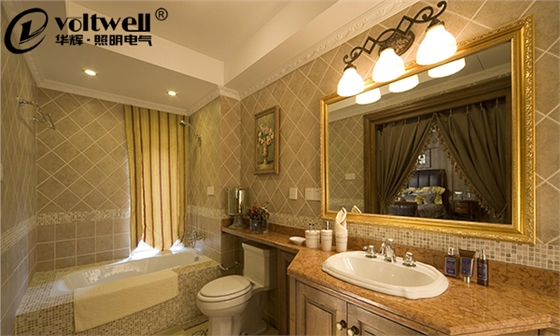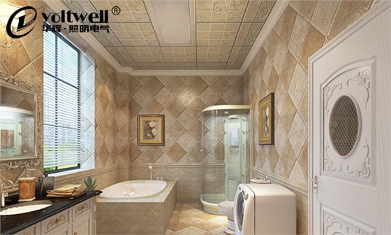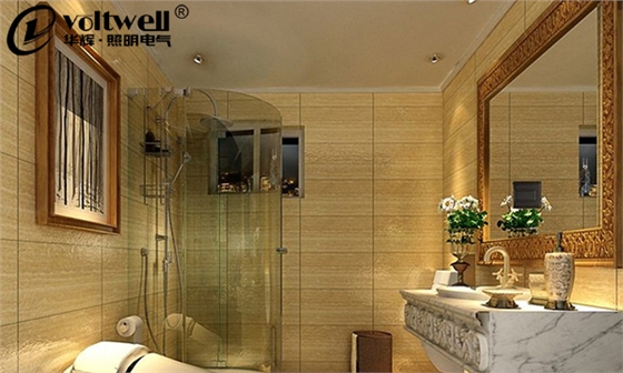 衛生間在燈種選擇上,一般整體上宜選LED集成吊頂面板燈,調至柔和的亮度就足夠了。因為衛生間內照明器開關頻繁,選擇LED集成吊頂面板燈做光源比較省電,而且人的臉色,除了在自然光下,就屬在微偏黃的燈光下顯得漂亮。化妝鏡旁必須設置獨立的照明燈,作為局部燈光補充,這種“對鏡貼花黃”的照明可選LED日光燈,以增加寬敞、清新的感覺,而且便于發現妝容的微小瑕疵。現在也有些人,覺得在雪白的燈光下照鏡子,容易顯得蒼白,所以喜歡環繞鏡子設置一圈黃光的小射燈,頗有演出時的化妝臺的架勢,但射燈的防水性稍差,適合干濕分離的衛浴空間。