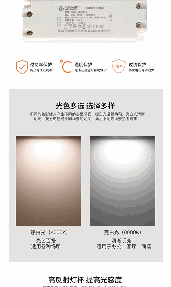 變壓器和燈杯是射燈最重要的部件,也是選購射燈時的重點觀察對象。擁有優(yōu)質(zhì)變壓器和燈杯的射燈,其亮度和效果要比普通的射燈好很多。你可以拆開變壓器的外殼,看里面電路板和線圈的大小,電路板大則元件的排列要稀一些,散熱性較強(qiáng);而線圈的大小則決定了射燈的亮度和使用壽命。