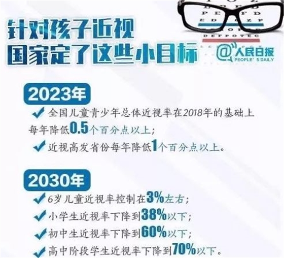 從國家和民族未來的高度出發(fā),國家相關部門專門對兒童青少年視力健康問題作出重要指示。2018年8月30日,經(jīng)國務院同意,教育部、國家衛(wèi)生健康委員會、國家體育總局等相關政府部門聯(lián)合印發(fā)《綜合防控兒童青少年近視實施方案》。