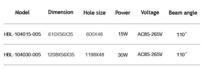 | 產(chǎn)品型號:HBL-104030-005 外形尺寸:1208X56X35mm 開孔尺寸:1198X48mm 功率:30W 色溫:CCT+RGB 燈珠類型:2835+3528 輸入電壓:AC85-265V 發(fā)光角度:110° 主體材料:冷軋板 顏 色:白色/黑色 驅(qū) 動:外置驅(qū)動 |